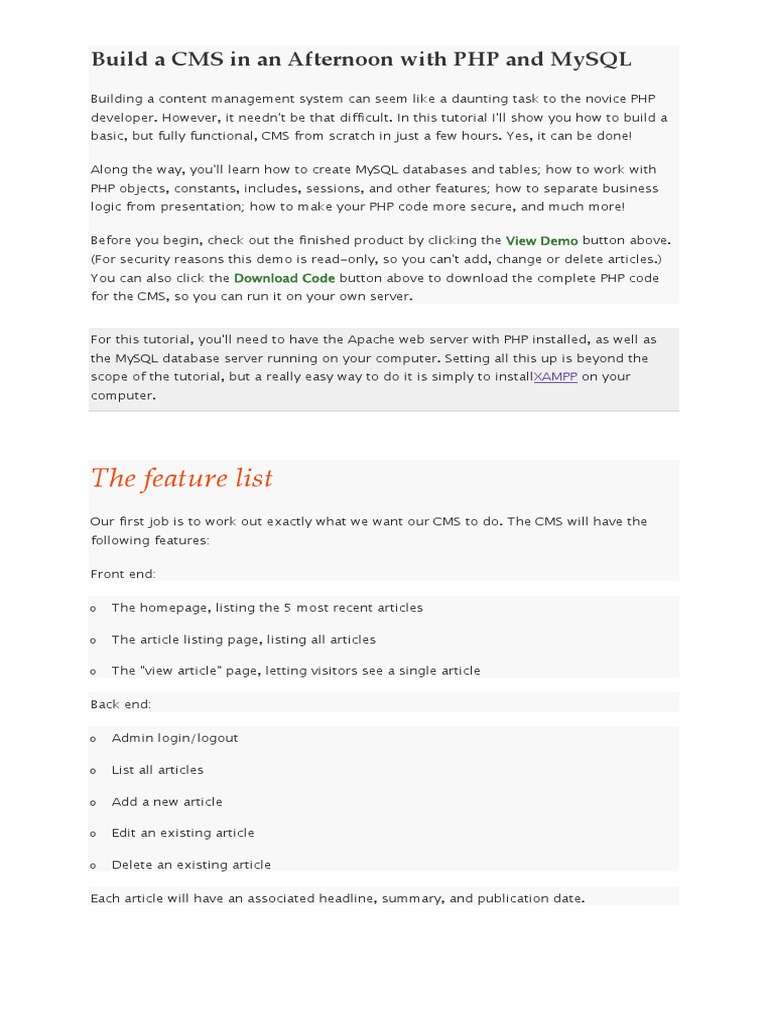 Build A Cms In An Afternoon With Php And Mysql - As obvious as it sounds, everything depends on a.