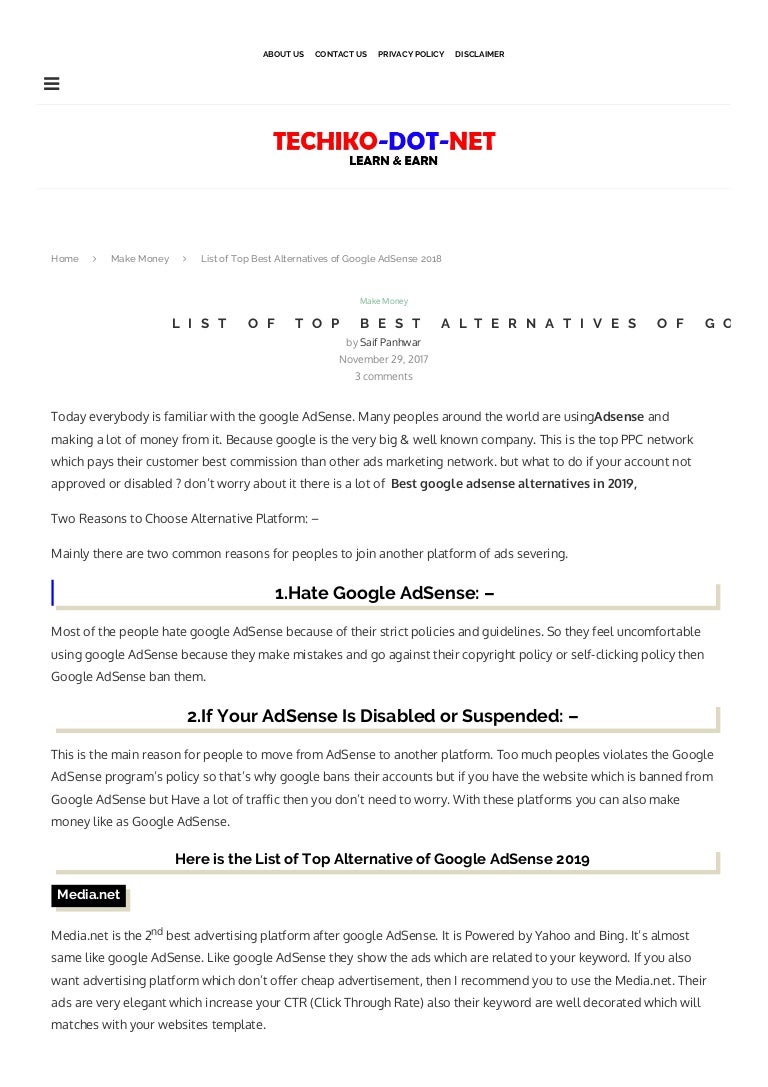 Best Alternatives Of Google Adsense 2019 - Through itѕ adsense program google let you earn without the need for uou to sell anything at all to anyone anywhere.